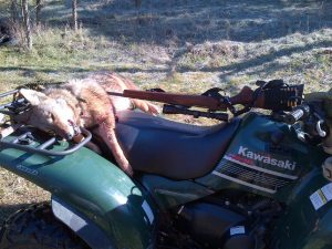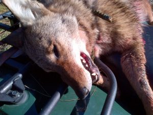 I had a notion how to solve the issue, but I did let it go on for just over a week. When it came up again one morning, I showed him this photograph of a coyote I had shot and killed in the field several years before.